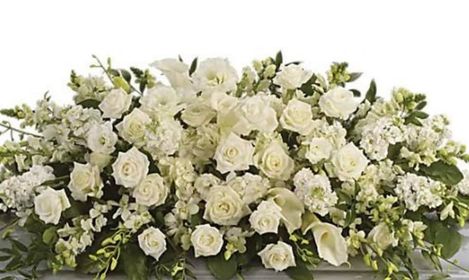 all white casket spray